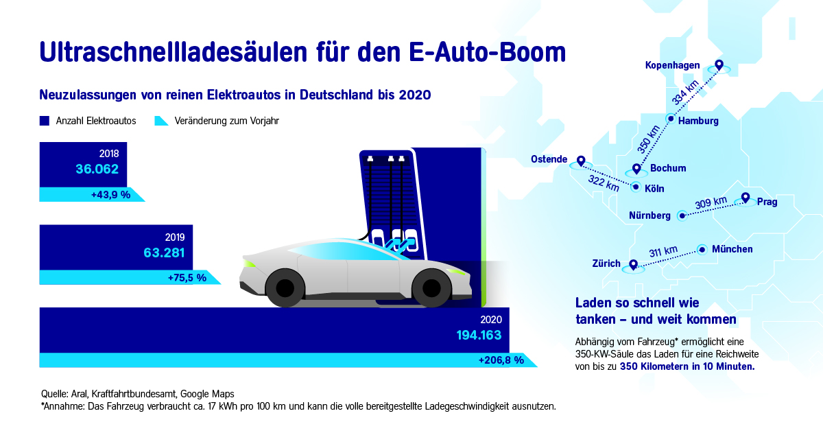 500 Ladepunkte an über 120 Tankstellen bis Jahresende – Einführung neuer E-Marke „Aral pulse“ – ganzheitliche Lösungen für Flottenkunden – 350 Kilowatt-Charger machen Laden so schnell wie Tanken