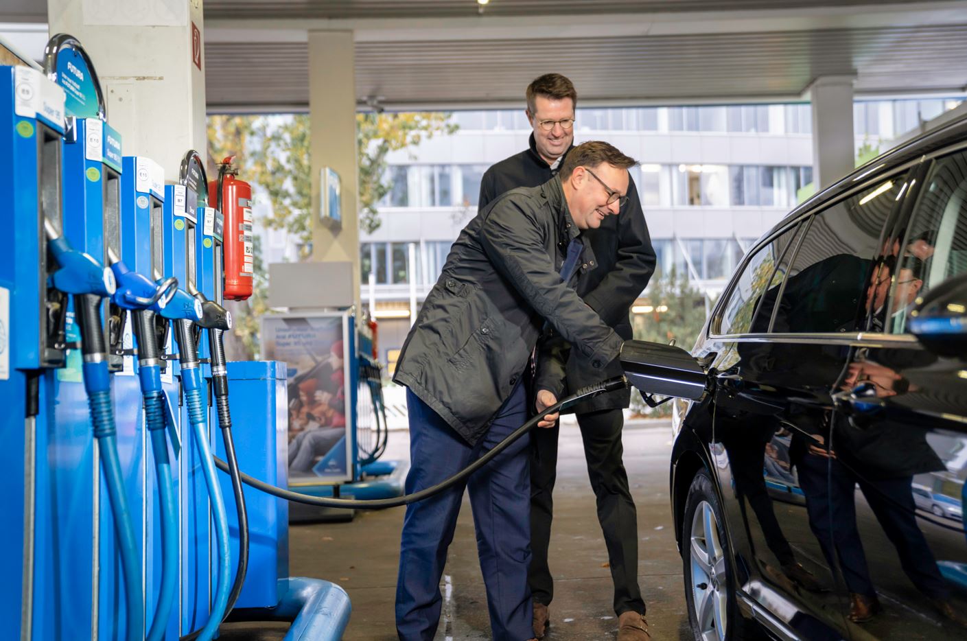 Bochum, 22. November 2022 – Aral testet zwei neue Kraftstoffe auf dem Markt – Aral Futura Super 95 und Aral Futura Diesel. Beide Kraftstoffe sparen mindestens 25 Prozent CO2-Emissionen im Vergleich zu rein fossilen Kraftstoffen* ein und enthalten wenigstens 30 Prozent hochwertige erneuerbare Kraftstoff-Komponenten, inklusive eines erheblichen Anteils fortschrittlicher Biokomponenten**. Sie sind nun an je einer Aral Tankstelle in Berlin und einer in Düsseldorf für Kundinnen und Kunden erhältlich. Die erste offizielle Tankbefüllung eines Pkw erfolgte heute in der Berliner Holzmarktstraße in Anwesenheit von Oliver Luksic, Parlamentarischer Staatssekretär beim Bundesminister für Digitales und Verkehr.