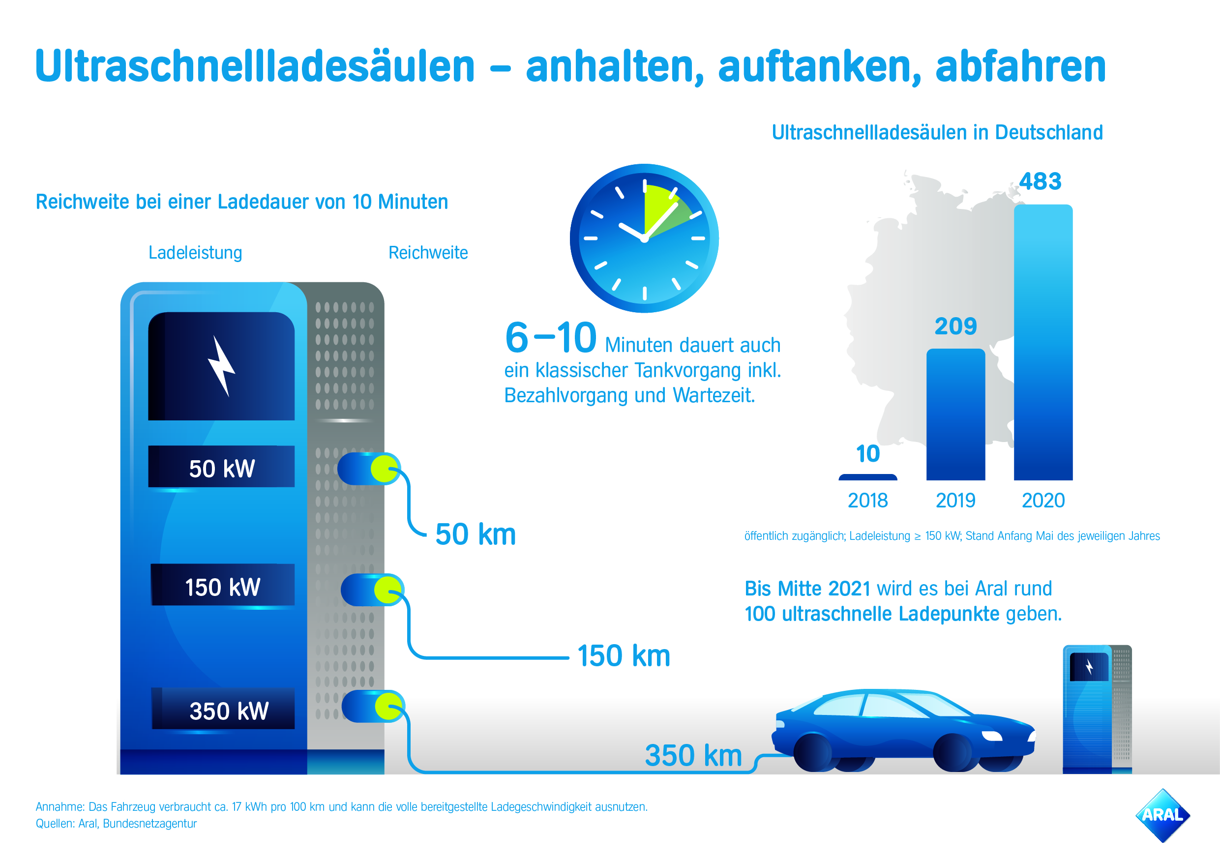 Aufladen an 350 Kilowatt-Chargern in zehn Minuten für 350 Kilometer Reichweite – Langfristige Planung sieht mehrere hundert Standorte vor – Aral Fuel & Charge Angebot für Flottenkunden