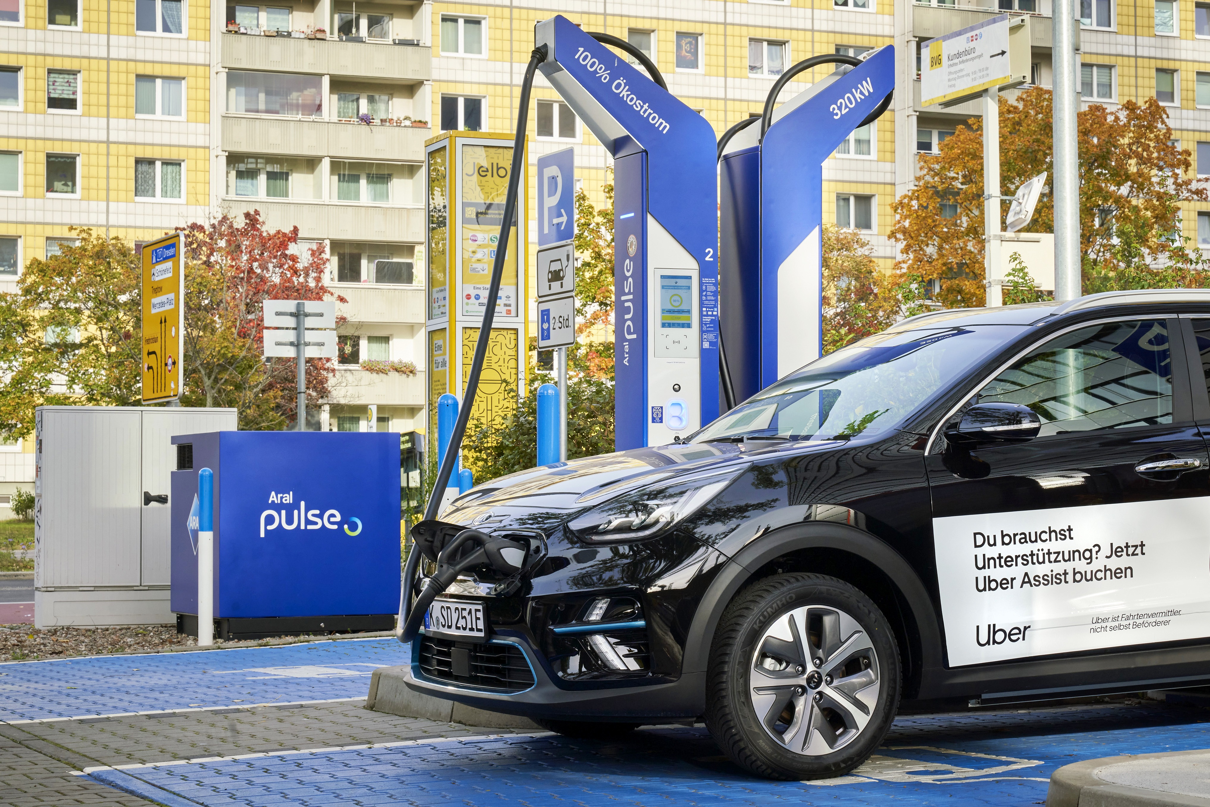 Aktuell sind in der Hauptstadt Aral Ladesäulen in der Holzmarktstraße in Mitte in Betrieb. Sie gehören zum ersten in Deutschland konzipierten „Mobility Hub“, der verschiedene Mobilitätsdienstleistungen wie E-Laden, Car-Sharing oder E-Scooter-Verleih an einem Standort vereint. In den nächsten Monaten kommen allein in der Hauptstadt drei weitere Standorte mit ultraschnellen Ladesäulen hinzu. An allen Aral pulse Ladepunkten beziehen Kunden 100-prozentigen Ökostrom, so dass Uber-Partner emissionsfreie Fahrten innerhalb der „Uber Green“-Vermittlungsoption anbieten können. „Uber Green“ vermittelt bereits in vielen Städten Fahrten in vollelektrischen und besonders umweltfreundlichen Hybrid-Fahrzeugen. Deutschlandweit baut Aral sein Netz an High Power Chargern bis Jahresende auf rund 500 Ladepunkte an rund 120 Tankstellen aus. Verfügt das Auto über die entsprechende Technik, kann bei einer Ladeleistung von bis zu 350 Kilowatt innerhalb von zehn Minuten eine Reichweite von bis zu 350 Kilometer geladen werden.