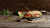 Knusprig gegrilltes Panino mit schwarzen Olivenstückchen, Pesto-Rosso Aufstrich, frischem Rucola, gegrillter Hähnchenbrust, gegrillter Zucchini und getrockneten Tomaten.